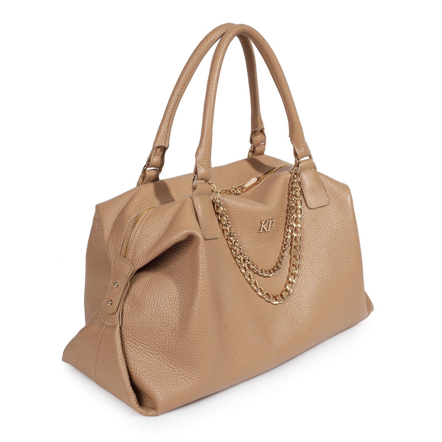 Leather Top Handle Bag, Dark beige Leather Handbag Top Handle, Women's Leather Bag KF-3733