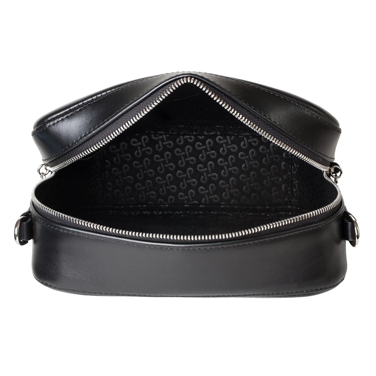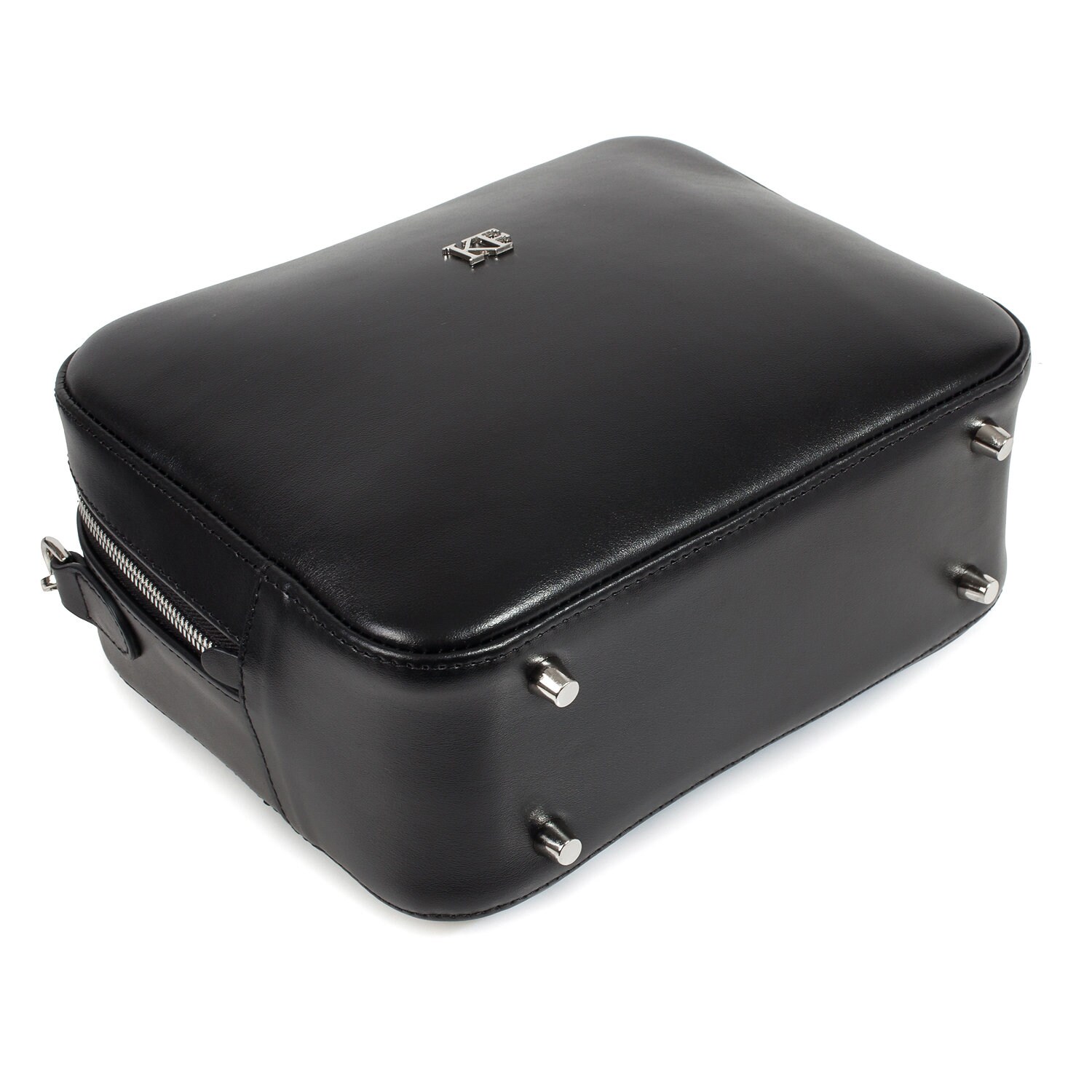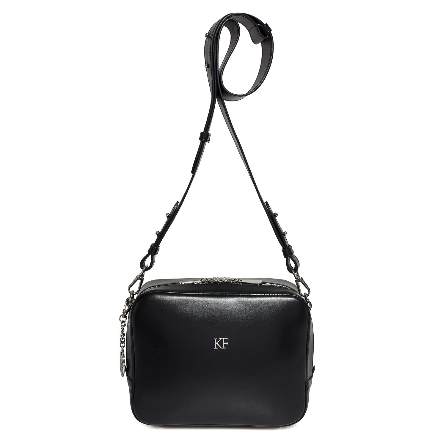 Black genuine leather woman shoulder bag from ukrainian designer Katerina Fox. Fashionable and elegant modern bag KF for bright girls and women. This bag is able to attract attention and highlight your exquisite taste. The internal space of a bag is equipped with one spacious compartment and one zipper pocket. The bag is closed with a zipper. The length of the strap is adjustable. The kit also includes a storage bag.