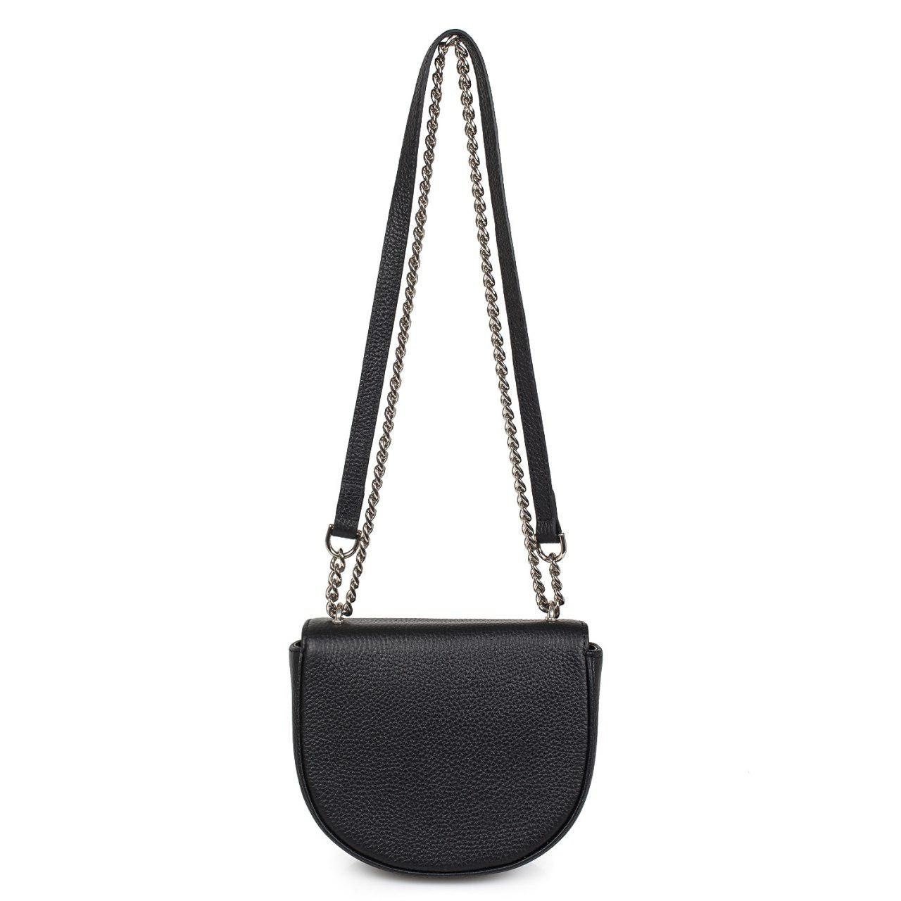 Black genuine leather woman shoulder bag from ukrainian designer Katerina Fox. Fashionable and elegant modern bag KF for bright girls and women. This bag is able to attract attention and highlight your exquisite taste. The internal space of a bag is equipped with one spacious compartment and one patch-pocket. The bag is closed with a clasp. There is a long handle that allows you to wear the bag on the shoulder. The kit also includes a storage bag.