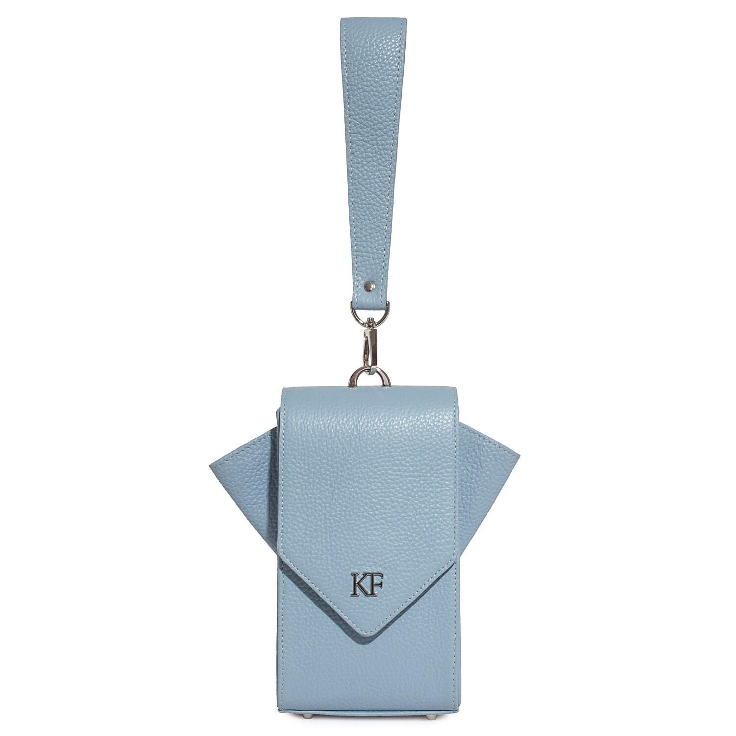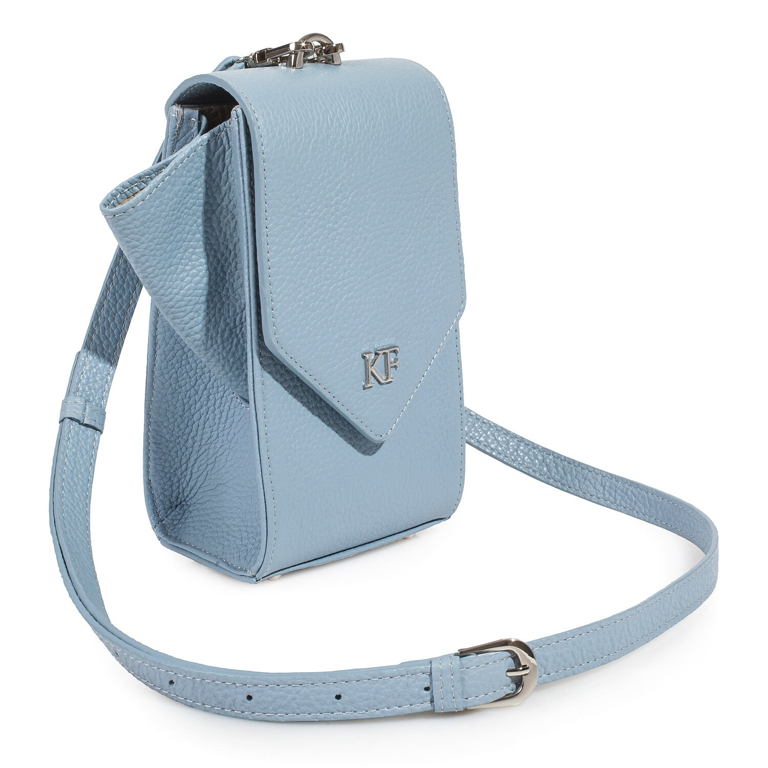 Blue genuine leather woman crossbody bag from ukrainian designer Katerina Fox. Fashionable and elegant modern bag KF for bright girls and women. This bag is able to attract attention and highlight your exquisite taste. All accessories for Katerina Fox bags makes the same factory as for Michael §¬ors, Calvin Klein, DKNY and other famous brands.The internal space of a bag is equipped with one spacious compartment, four patch pockets for cards. The bag is closed on the button-magnet. The bag has a short removable handle on wrist.The length of the strap is adjustable. The kit also includes a storage bag.