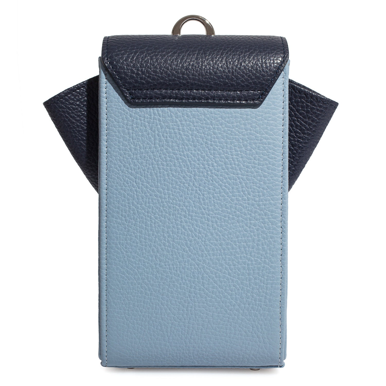 Blue genuine leather woman crossbody bag from ukrainian designer Katerina Fox. Fashionable and elegant modern bag KF for bright girls and women. This bag is able to attract attention and highlight your exquisite taste. All accessories for Katerina Fox bags makes the same factory as for Michael §¬ors, Calvin Klein, DKNY and other famous brands.The internal space of a bag is equipped with one spacious compartment, four patch pockets for cards. The bag is closed on the button-magnet. The bag has a short removable handle on wrist.The length of the strap is adjustable. The kit also includes a storage bag.