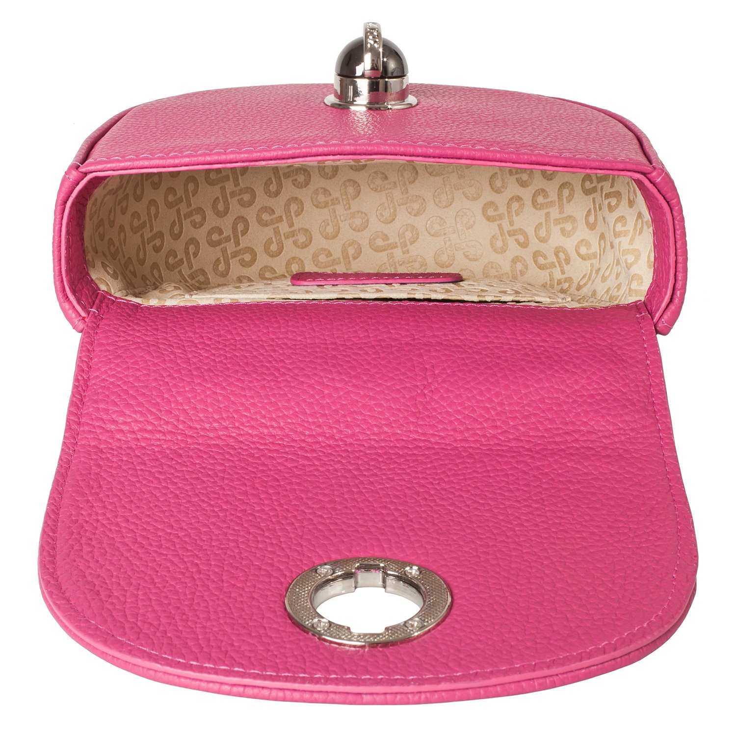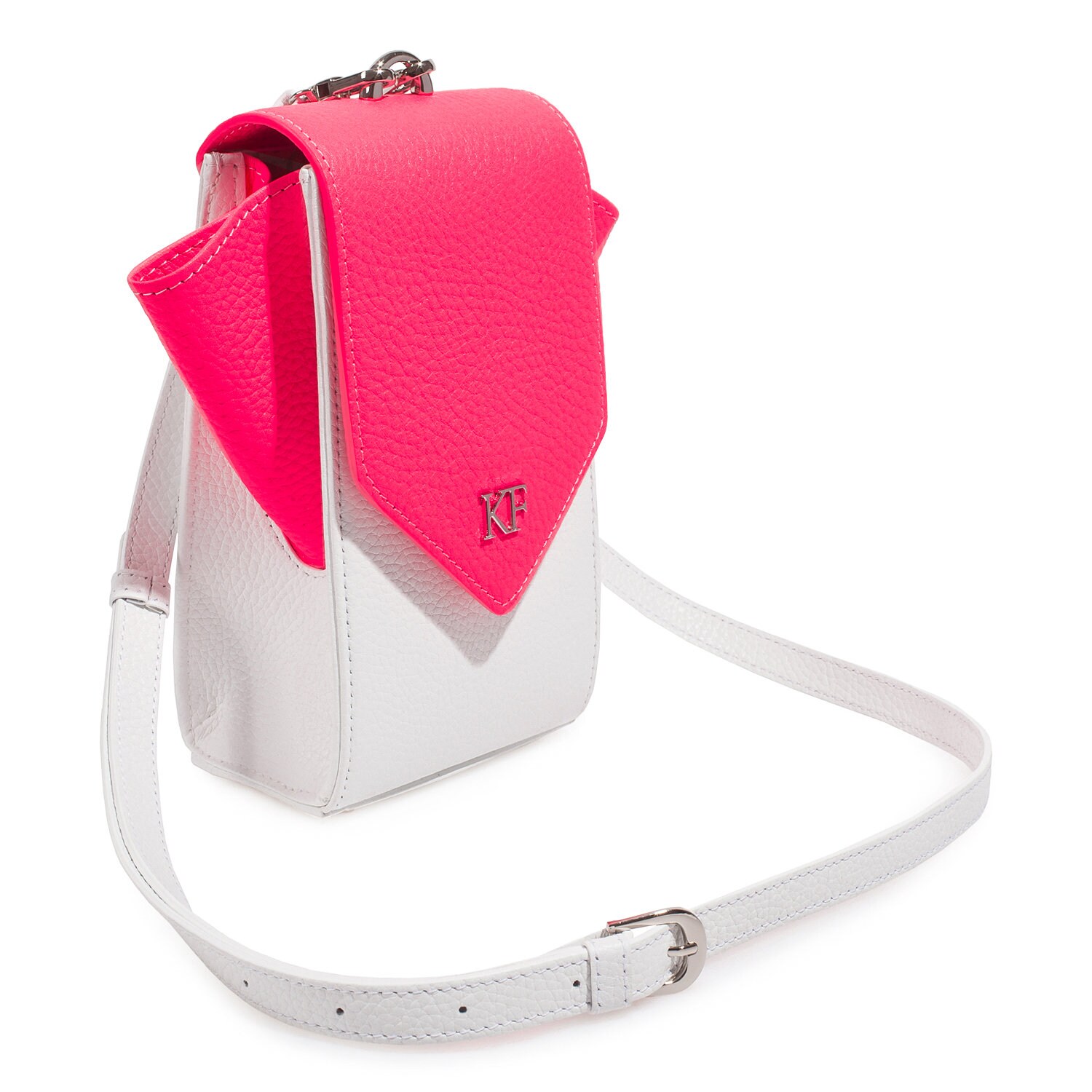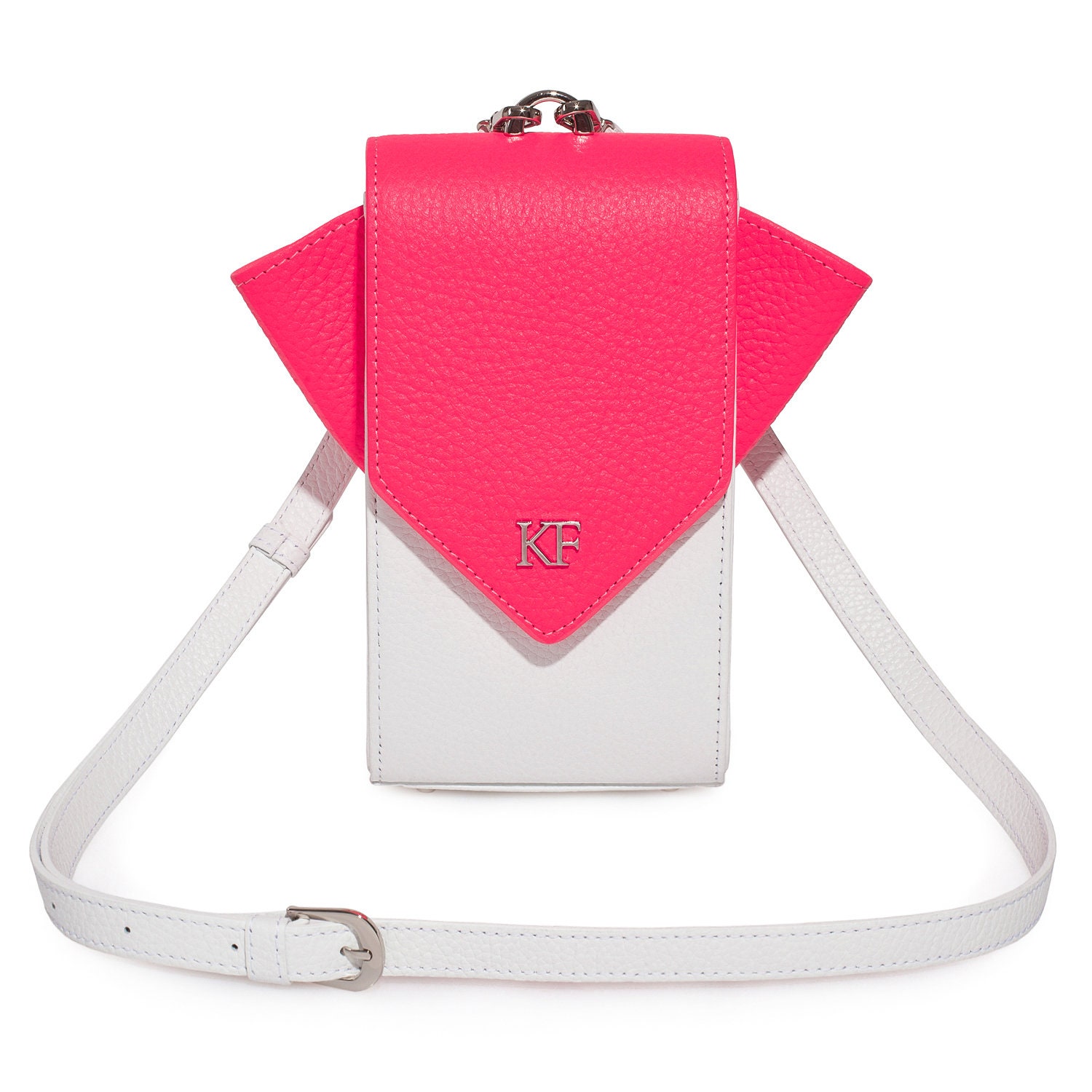 Fuchsia genuine leather woman shoulder bag from ukrainian designer Katerina Fox. Fashionable and elegant modern bag KF for bright girls and women. This bag is able to attract attention and highlight your exquisite taste. The internal space of a bag is equipped with one spacious compartment and one patch-pocket. The bag is closed with a clasp. There is a long handle that allows you to wear the bag on the shoulder. The kit also includes a storage bag.