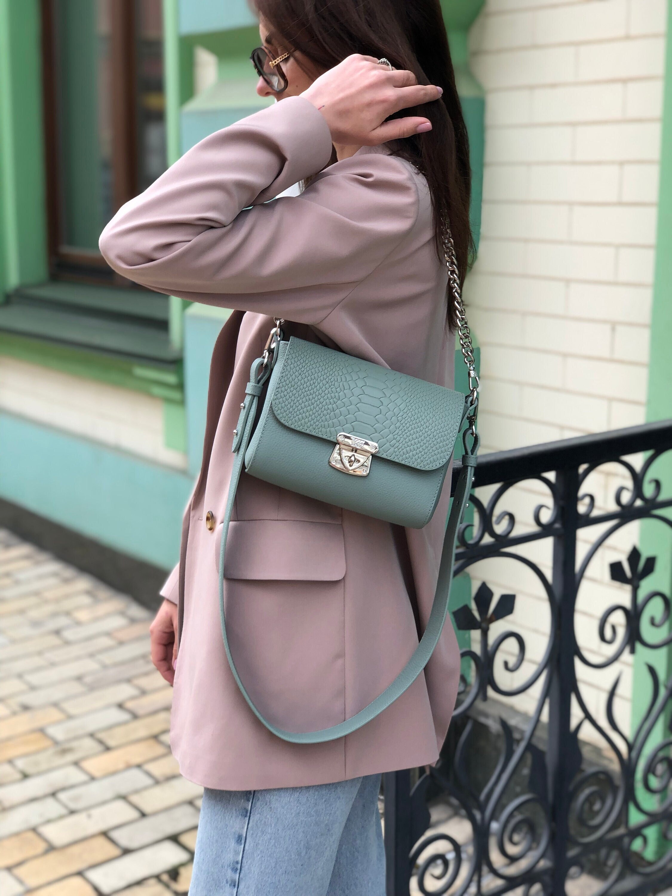 Leather Cross body Bag, White Leather Shoulder Bag, Women's Leather Crossbody Bag, Leather bag KF-3632