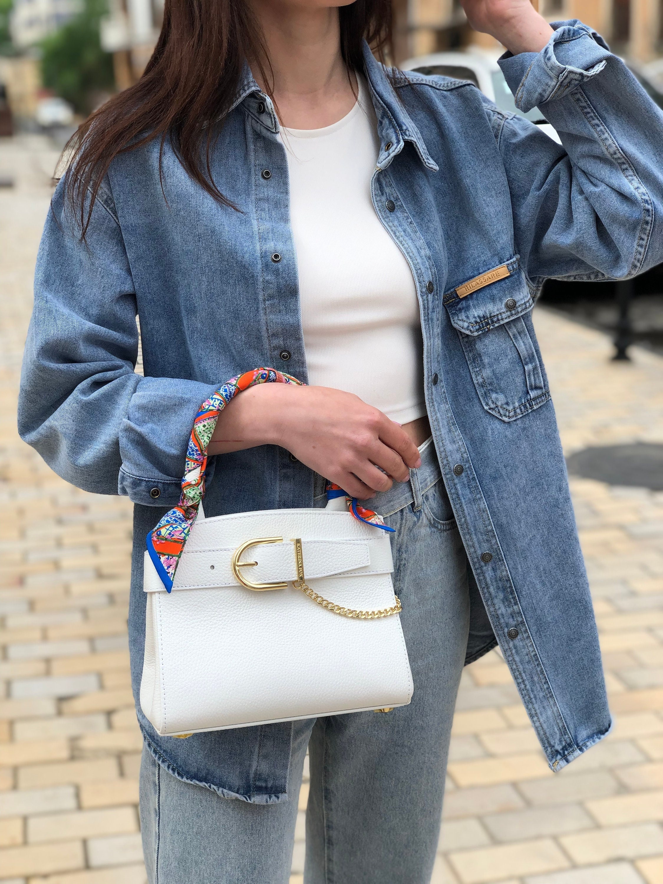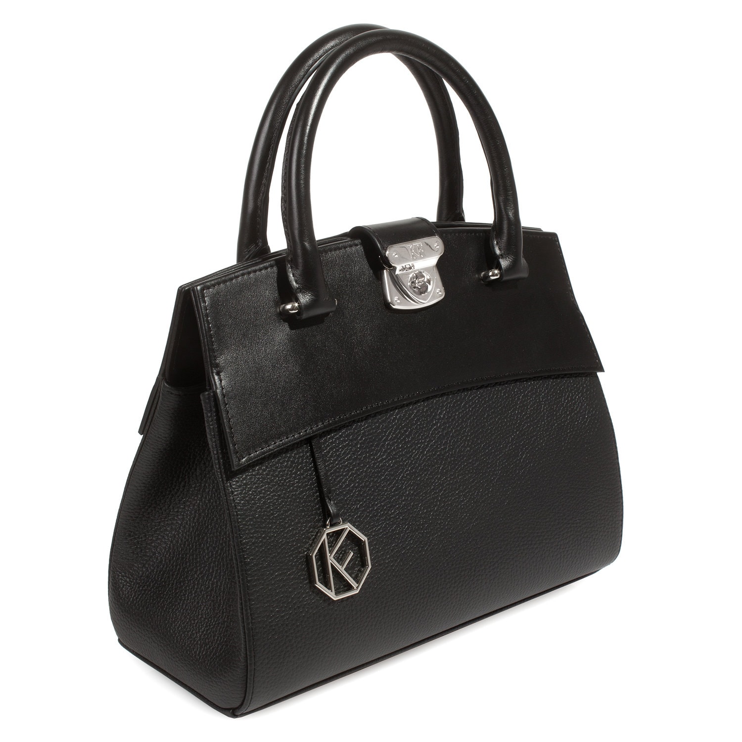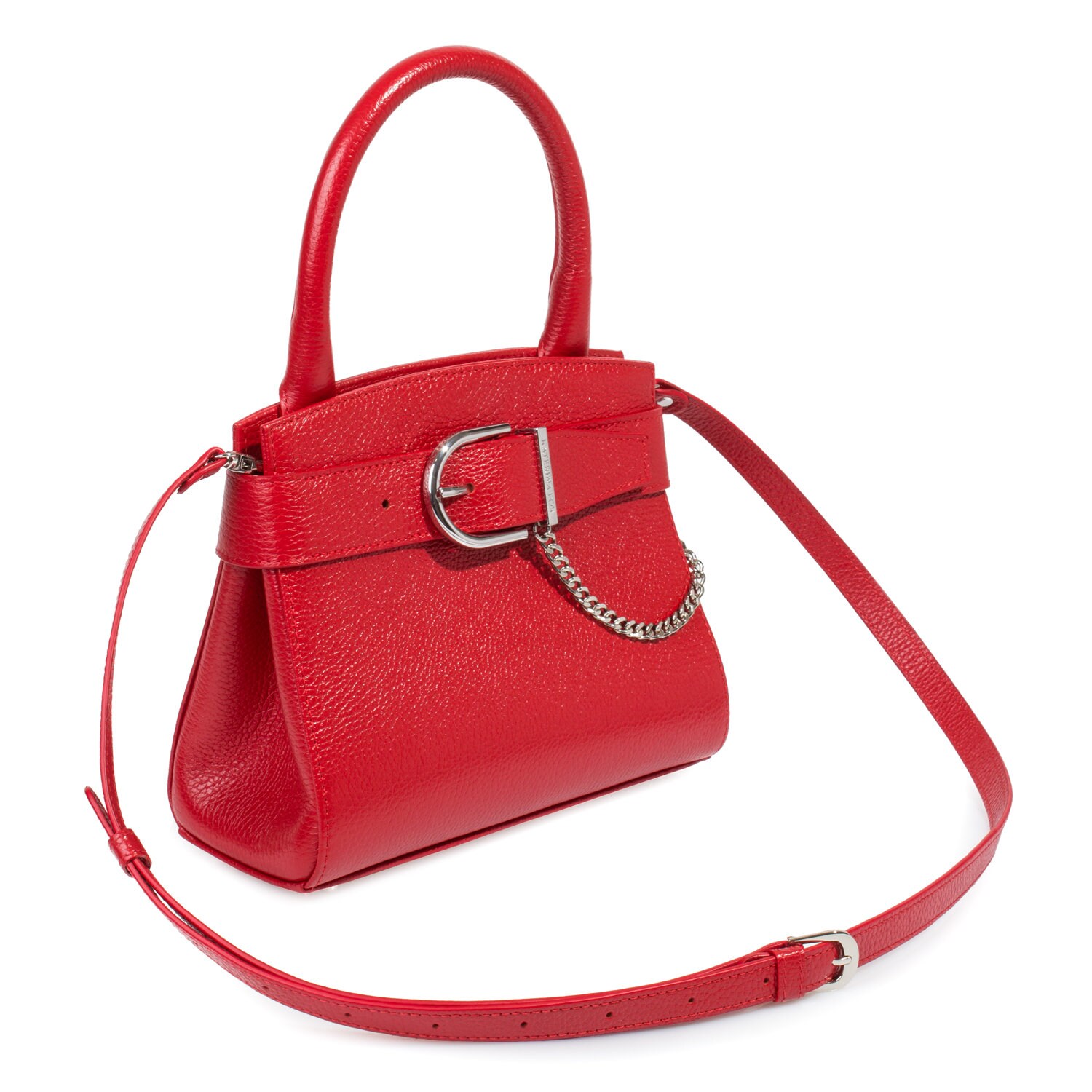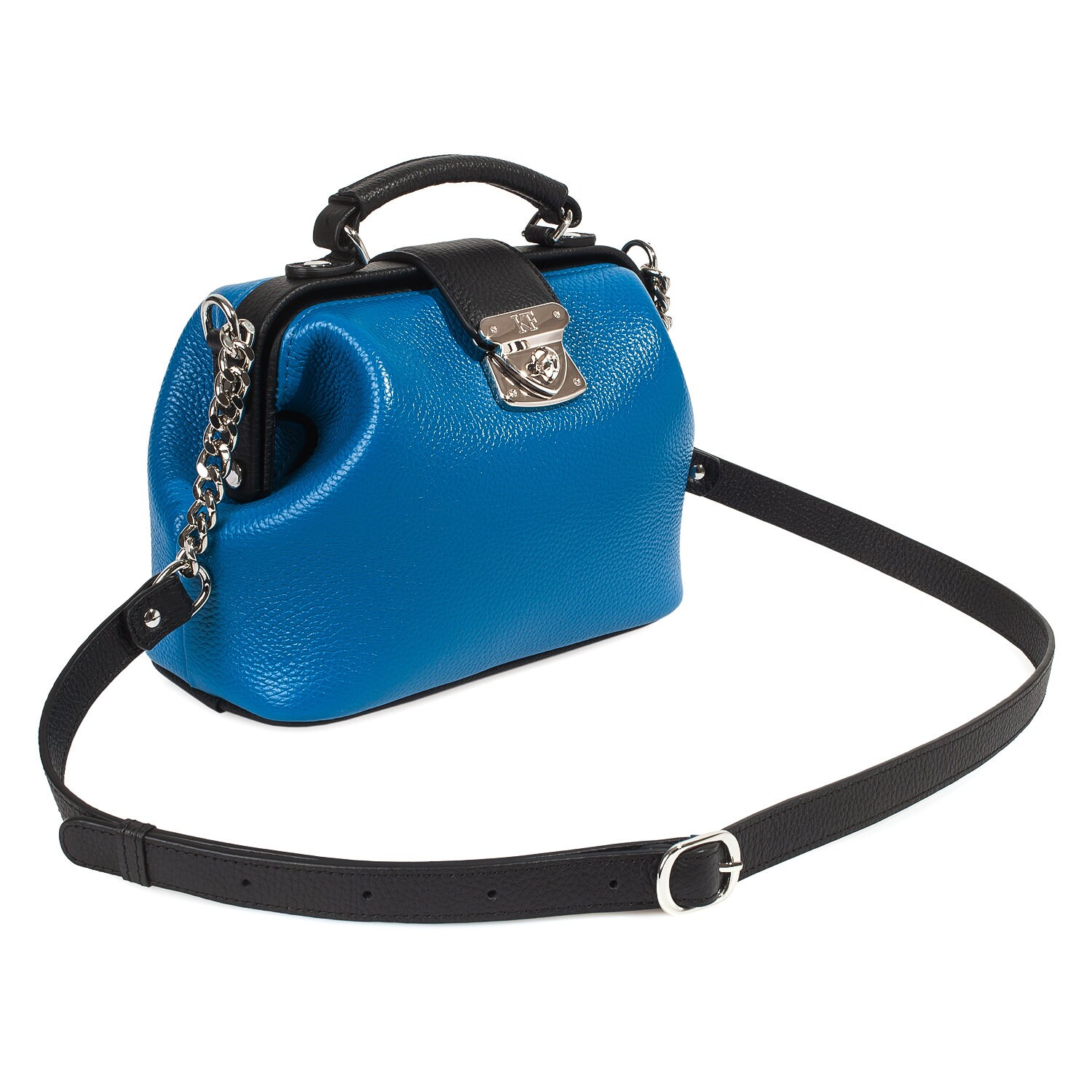 Women's leather bag made of genuine leather, hardware with galvanic coating and microfiber lining. The internal space of a bag is equipped with three compartments, one compartment and two side pockets, one with a zipper. §³loses with 3 magnet buttons. The bottom of the bag is protected with metal legs. There is a long handle that allows you to wear the bag on the shoulder. The kit also includes a storage bag.